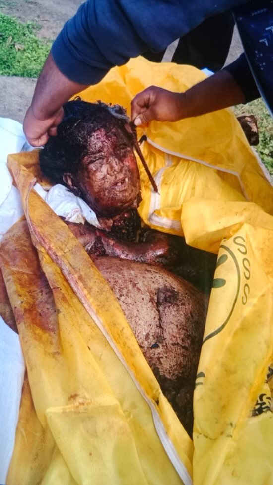 “While searching, I found him. I touched him to see if he was still alive. His face was cold, though his whole body was still a little warm. I touched his chest. He was hit at his chest. I carried him to the house. I found some medical workers and they helped to manage the body. The body was left there. I asked two or three people to wait with him. It was very difficult. The child, Pyae Pyae was hit on the left buttock, and there was no flesh left at all. I didn’t dare look at it when she was taken to the hospital. She is better now. Only three pillars remain of our house. The neighbor’s house was also hit by the bomb, and both of the victims who were in the house were killed. There is nothing left in the house.”