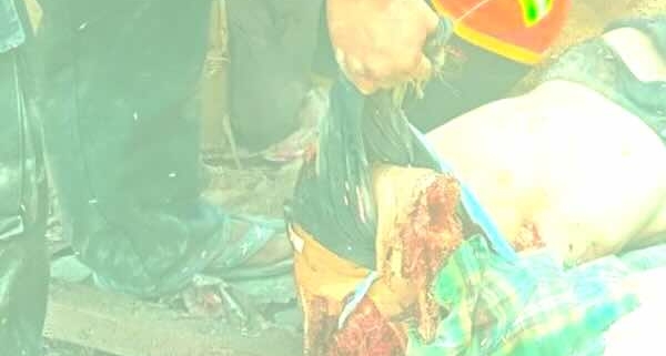The father of the deceased Maung Myo Min Htwe said, “Around 2 p.m., the bomb fell on the back of the house, on the west side of the kitchen. Only one bomb was found, but the entire kitchen was gone. At that time, three people were hit. Myo Min Htwe’s body was only found later; it wasn’t immediately visible. The surrounding houses were also destroyed. The other girl died. The [third] person died the next morning. The bomb might be 300 pounds-bomb. I only heard one sound. But others said there were two bombs. The children were playing in the house before the bomb dropped. I was calling the children to eat. After the bomb was dropped suddenly, I couldn’t hear the children’s voices. They didn’t respond either.”