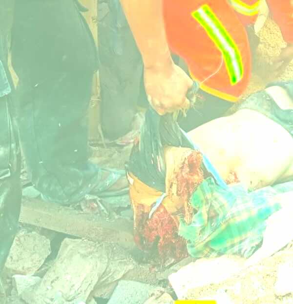 The father of the deceased Maung Myo Min Htwe said, “Around 2 p.m., the bomb fell on the back of the house, on the west side of the kitchen. Only one bomb was found, but the entire kitchen was gone. At that time, three people were hit. Myo Min Htwe’s body was only found later; it wasn’t immediately visible. The surrounding houses were also destroyed. The other girl died. The [third] person died the next morning. The bomb might be 300 pounds-bomb. I only heard one sound. But others said there were two bombs. The children were playing in the house before the bomb dropped. I was calling the children to eat. After the bomb was dropped suddenly, I couldn’t hear the children’s voices. They didn’t respond either.”