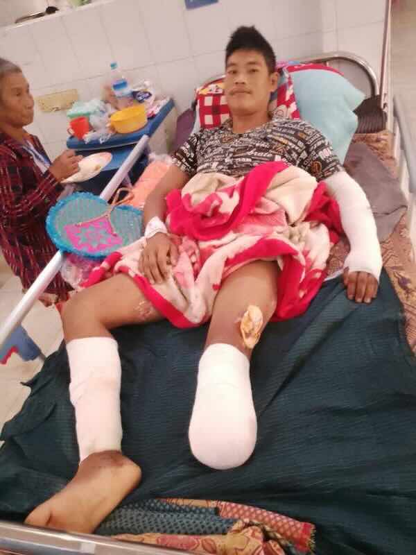 U Nyi (pseudonym) is currently receiving treatment at Pyin Oo Lwin Hospital due to a severely broken left leg (resulting in amputation). Maung Ni (pseudonym) was also injured in the left leg but has since been discharged from the hospital.