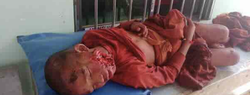 The injured novice is currently receiving emergency medical treatment at Nam Kham Hospital and is in urgent need of financial assistance.