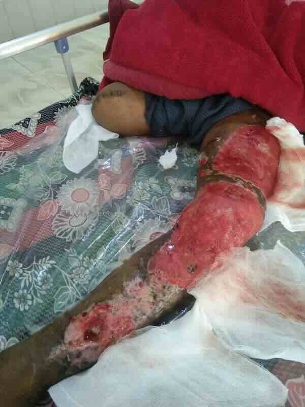 အဲမှာပဲ နင်းမိတယ်။ မိုင်းက အကြီးကြီးပဲ၊ ညာခြေထောက်မှာ ထိတာ။ ဒူးအပေါ်ပိုင်းအထိ ဖျက်ရတယ်၊၊ ဘယ်ခြေထောက်လဲ ဒဏ်ရာရတာရှိတယ်။ အခုလည်း ဆေးကုသနေရတုန်းပဲ။ ကလေးလည်းငယ်သေးတော့ ဆေးကုသစရိတ်အတွက် အကူအညီလိုအပ်နေတယ်” ဟုပြောပါသည်။